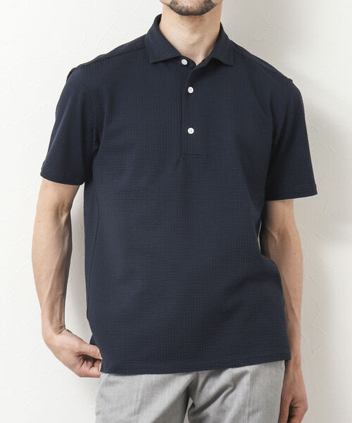 襟型のデザインにこだわった ON/OFF兼用の清涼感あるポロシャツ ◆素材 ・綿×ポリエステルで清涼感に加えハリ感も ・伸縮性がありシワにも強いサッカー素材 ◆デザイン ・襟元に立体感を出してくれるワンピースカラー ・首まわりをスッキリと見せてくれるカッタウェイ ・タックインもタックアウトもできる絶妙な着丈 ・シンプルでスッキリとしたシルエット ◆スタイリング ・スラックスやチノパンと合わせたビジカジスタイルに ・ジャケットのインナーとしても活躍 ・デニムに合わせてカジュアルな着こなしも ※この製品は縫製後、製品洗いをしています。そのため多少の歪み、シワなどが見られたり、風合いやサイズ等が1枚1枚異なります。汗や雨等で濡れた時や、摩擦により色落ちし、他の衣料を汚すことがありますので(特に濃色のもの)ご注意ください。 ★気になるアイテムは【お気に入り登録】がオススメです! 入荷情報やクーポン、セール情報が通知されるようになります。 【お取扱い上のご注意】 末永くご愛用頂くために、アテンションタグを必ずご確認の上、着用又はお取り扱い下さい。 ※店頭及び屋外での撮影画像は、光の当たり具合で色味が違って見える場合があります。商品の色味は、スタジオ撮影の画像をご参照下さい。 ※商品画像に関しては出来る限り忠実に表示出来るよう努めておりますが、お客様がご利用のモニターの設定及び特性により、実際の商品と比較し色味に若干の誤差が生じる場合があります。 ※画像の商品はサンプルとなりますので実際の商品と仕様、加工、サイズが若干異なる場合がございます。 ※製品洗い加工の商品は、多少の歪み、シワなどが見られたり、風合いやサイズ等が1枚1枚異なります。汗や雨等で濡れた時や、摩擦により色落ちし、他の衣料を汚すことがありますので(特に濃色のもの)ご注意ください。