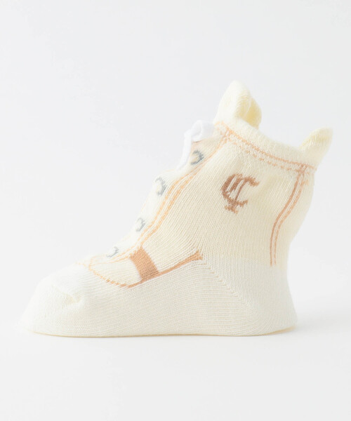 《デザイン》 ハイカットスニーカーを履いているようなスニーカー柄カップ入りソックスです。 ベロ・かかとのつまみ部分の飛び出し仕様やリボンをつけることで より本物に見えるように工夫しています。 リボンは中心で縫い止めているのでほどける心配はありません。 サイドに入っているエンブレム風ロゴもポイントです。 足底にはクリアロゴのすべりどめがついています。 (すべりどめに色が付いているように見える場合がありますが、 ソックスの色が透けて見えているものなので問題ありません。) 9-12cmと幅広いサイズに対応しています。 《素材》 伸縮性に優れたソックスに適した糸を使用しています。 #ベビーソックス ※画像の商品はサンプルとなりますので実際の商品と仕様、加工、サイズが若干異なる場合がございます。 ※こちらの商品はFIVE FOXes独自の採寸方法となっています。 本サイトのサイズガイドと採寸方法が異なる場合がありますのでご了承ください。