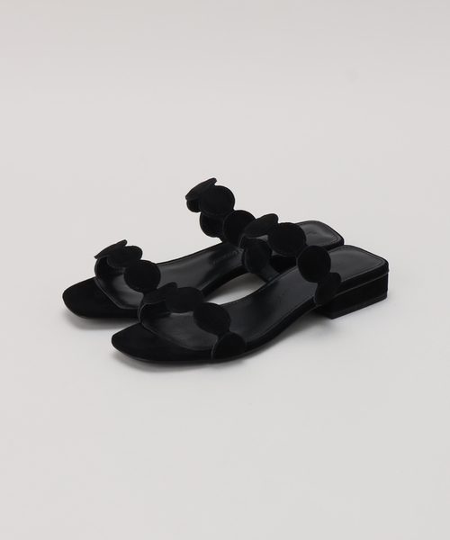 春のスタイリングのポイントとなるサンダル。キャッチ―なモチーフが目を惹く1足。二本のストラップでホールド感もあり、低めのヒールで安定感のある履き心地です。モードな着こなしにフィットするブラック、遊び心ある鮮やかなパープルの2色展開。【TSURU by MARIKO OIKAWA(ツルバイマリコオイカワ】日本発のシューズブランド。『どこにもない靴を』という願いから生まれました。2003年よりデザイナーMariko Oikawaにより、シューズをメインにバッグ,ヘアアクセサリーなどその世界感を様々なTsuruとして展開しています。※取り扱いについては、商品についている品質表示でご確認ください。※こちらの商品は、NOBLEでの取り扱いになります。直接店舗へお問い合わせの際はNOBLE店舗へお願い致します。※照明の関係により、実際よりも色味が違って見える場合があります。またパソコン・スマートフォンなどの環境により、若干製品と画像のカラーが異なる場合もございます。予めご了承ください。