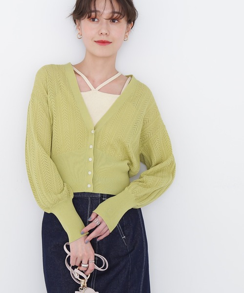 さらりと羽織れる透かし編みニットカーディガン。涼しげな透かし編みをベースに、袖口と裾は長めにとったリブ編みできゅっと引き締めてくれます。お手持ちのインナーと合わせてトップスのようにも、ワンピースなどの羽織りにも使いやすく、これからの季節は冷房対策にもオススメです。**********************透け感:あり裏地:なし伸縮性:あり光沢感:なし生地の厚さ:普通**********************