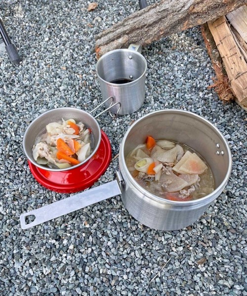 直火にも対応◎お鍋として、保存容器としても活躍するアルミキャニスター 鮮やかな赤い蓋が印象的な、ポルトガルの老舗食器メーカーMardouro(マルドウロ)社のアルミ製キャニスター「Lサイズ」です。 ■特徴 ・厚手のアルミニウム製で、少々手荒に扱ってもへこたれない頑丈な作り ・留め具はフタを開けるとハンドルになり、鍋として使える仕様・食材を入れて持ち運び、そのまま直火で調理可能 ・フタにはパッキン付きでしっかりと固定でき、持ち運びも安心 ・保存容器と調理道具を兼ねたミニマルな作りで、極力荷物を減らしたいトレッキング時やキャンプなどにも活躍 ・おうちのキッチンで食材の保存容器として使うのもおすすめ ・どこか懐かしいレトロなデザインが魅力的 ■サイズ 本体:幅14.0 × 高さ14.0 × 奥行14.0 (cm) 容量:1.7L ソロキャンプから2,3人分の食事の調理用にも最適の大きさで、たっぷりのスープなどを調理する際にも重宝します。 備考:食洗機、電子レンジ、オーブン不可 【注意事項】 ・ガス等直火対応(ラバーパーツがついているものは溶ける可能性がございますのでお気をつけください) ・製品全体にスレやキズ、多少の凹みがある場合がございますので予めご了承ください。 ・蓋にパッキンは付いておりますが、液体を入れた状態での保管、持ち運びは漏れる可能性がありますのでおやめください。 ▼サイズ違いはこちら ※同じ直径で深さが異なります ・アルミキャニスター スモール / 品番:hd3997 ・アルミキャニスター セパレート / 品番:hd3999