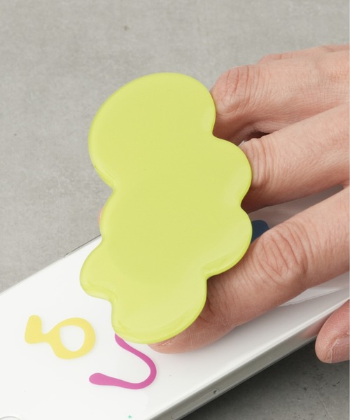 ぷっくり質感とニュアンスモチーフが可愛いスマホ用グリップ。モチーフを引っ張ると2段階に高さが調整出来ます。スマートフォングリップの後面に粘着テープがついているので、シートを剥がして、ケースの平らな面に貼り付けてください。強力な粘着テープを使用しているため、一度貼り付けたら簡単に外れることはありません。慎重に貼り付けを行ってください。プラスチック,ポリカーボネート,TPU製のケースに貼ることを推奨いたします。 シリコンやEVA素材のケースには貼り付けしづらくなっております。また、合皮やレザーなどは質感によって付くものと付かないものがありますので、予めご了承ください。 写真のようにSALAHのスマホケースとセットで使うのも統一感がでて、おすすめです。別ページにて販売しておりますので、ぜひチェックしてみてくださいね♪ ※「貼り付けできなかった,貼る位置を間違えた」などの理由での返品・交換はお断りしております。 【サイズ】 グリーン:5.7×9.3cm オレンジ:5.9×6.4cm ピンク:5×5.1cm オレンジ系その他:5×5.1cm グリーン系その他:5×5.1cm ブルー:6×5.5cm ライトブルー:6.7×5.4cm 【ブランド】 ~SALAH サラー~ ”frame the scenery” アートや音、景色の記憶を紡ぐアクセサリーとして2016年にスタート。カラフルな樹脂を使ったスマホグッズや他にないデザインのスマホケースが注目を集めている。