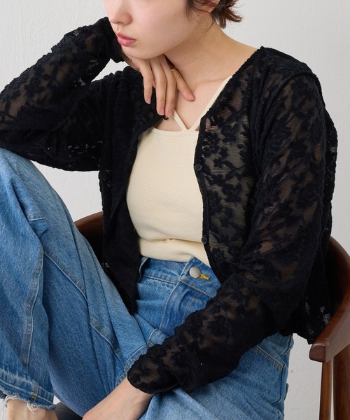 透け感が上品な春トップスの登場 ■デザイン 程よい透け感で上品な印象になるトップスが登場しました。 ジャガード素材なので甘くなり過ぎず大人めに着て頂けます。 2WAYでカーディガンとしても着用可能。前後で雰囲気が変わるので着回しを楽しめます。 身体にフィットしてくれるコンパクトなシルエットで女性らしさも◯ 柔らかい生地感で肌触り良く、さらりと春夏に羽織りたいアイテムです。 ■コーディネート インナーにキャミソールを着て羽織りカーディガンとしても、ボタンを後ろにしてトップスとしても。 コンパクトなサイズ感とシルエットなのでキャミワンピースなどのインナーとしても相性抜群です。 薄手で春から秋まで長く着用頂ける嬉しいアイテムです。 ■素材・洗濯表示 素材:ポリエステル100% 洗濯:手洗いまたは洗濯ネットに入れ洗濯機の手洗いコースで洗濯可能 タンブル乾燥:不可 アイロン:150℃まで ●濃色製品は白、淡色の製品と一緒に洗わないでください。 ●浸け置き洗いは避け、洗濯後はすぐに脱水して、形を整えて陰干ししてください。 ●アイロンの際は、当て布をしてください。 ●強い日光(または照明)を長時間受けますと変色の恐れがありますので、着用及び保管の際はご注意ください。 ●着用時の摩擦や洗濯により表面に毛玉が発生しますので、発生した毛玉ははさみ等でカットしてください。 ●ご使用の際は、引っ掛けに十分ご注意ください。 ※サイズ採寸は各モールによって異なり、生産時期により色・素材・サイズ感など多少誤差が生じる場合がございます。→改行 ※撮影画像はサンプル品を使用しているため、実際の商品と仕様、加工、サイズが若干異なる場合がございます。 使用しているパソコンのモニター設定や、携帯電話のメーカー・機種により実際のカラーと異なって見える場合がございます。予めご了承ください。 ▼商品のお気に入り登録 ハートマークをクリックし、お好きなカラーを選んでお気に入りに登録 完売カラーの再入荷通知や、ラスト1点の通知、セールの通知も受け取ることができます。 ▼ブランドのお気に入り登録 新商品や再入荷等、いち早くブランドのお得な情報を受け取ることができます。 <返品・キャンセルについて> ・着用・洗濯後の返品・ご交換は致しかねます。 ・商品到着後、着用前に商品を確認して頂きますようお願い致します。