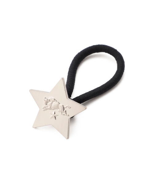 イルビゾンテの立体的なロゴマークが印象的なスター型のヘアアクセサリー。ゴムの先の存在感のあるスターがインパクトあるデザイン。表にはロゴマーク、裏側にもブランドネームのあしらいで細部までおしゃれ。いつものヘアスタイルにプラスしてさりげなく華やかなアクセントを与えてくれるアイテムです。