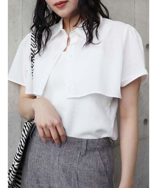 【2023 SUMMER COLLECTION】 珍しいシャツとタンクをドッキングさせたデザイン◎一枚で便利にトップスコーデが完成!■アイテムシャツドッキング風デザイントップスです。シャツの前を開けて着るとリブタンクにクロップト丈シャツを合わせたデザインに見える2WAYトップス◎初めからインナーがドッキングされたデザインなので、裾をINするだけできまるデザイン!ハイウエストのボトムとの合わせで、さらにベルトが付いたデザインだとクロップト丈のブラウスとバランスが取れます。ベーシックな白黒とムルーアらしい夏の濃いめブルーの3色展開♪■サイズ感中のタンクはコンパクトなサイズ感ショート丈で腰回りがスッキリとしたトップス◎■スタイリングハイウエストのボトムにインして合わせていただくのがおすすめ◎腰回りがスッキリした印象で細見え効果も!--------------------------------------------透け感:無し 生地の厚さ:普通裏地:無し サイズ感:タイト--------------------------------------------【知って得する便利機能◎ 】■商品のお気に入り登録再入荷時、ラスト1点の時にお知らせします。■ブランドのお気に入り登録新商品やお得な情報など、いち早くお得な情報をゲット!ぜひご活用ください。※着用画像はフラッシュの加減で実際の製品と色味等が異なる場合がございますので、生地のズームアップ画像をご確認ください。※ご利用の端末画面の設定により実際の商品と色味が異なる場合がございます。