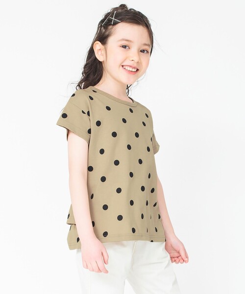 去年人気だった半袖Tシャツが今年も登場!! バック2段フリルデザインが可愛いポイント。 人気のドット柄を2色に増やし、新色カラーも追加! ----- 透け感:なし 伸縮性:あり 着用イメージ/カラー:ベージュ モデル:身長115cm 体重18.5kg サイズ:サイズ120 ※モデル着用写真についてはイメージの為、実際の 商品とカラーや仕様が異なる場合がございますので、 商品画像をご覧ください。 ※商品の色味につきまして、お客様のお使いのPCの モニター環境により実際のカラーと画像の色味が 違って見える場合が御座います。 予めご了承の上、ご注文下さい。 ※店頭・外での撮影画像は光の加減で、 実際の商品より明るく見える場合が御座います。 子ども/子供/こども/子供服/キッズ/ジュニア/男の子/女の子