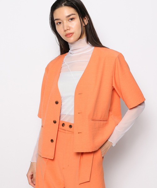 春夏の上品なコーデに シンプルなノーカラージャケット。 再生ポリ30%分含有させて紡績しています。 美シルエットでワイドボトムやスカートなどのボトムがゆったりめでも、バランスがとりやすい形に仕上げました。 こちらのジャケットはベルト付きリネン混パンツ(193883)・リネン混ミニキャミワンピース(193884)と同素材なので、組み合わせ自由自在にスタイリング可能◎ ーーーーーーー 透け感:透けない 伸縮性:あり 生地の厚さ:普通 裏地:あり ※こちらは参考情報となります。カラーにより多少の誤差がございます。 ーーーーーーー < FOREVER21/ CONCEPT > 新しい価値観を表明するコミュニケーションテーマは「Wear No Filter」 '一人一人のリアルを、美化したり、ぼかしたりすることなく、着ることでむしろ、その人らしさが裸になっていく。 そのままを映し出すこと。それらが最も魅力的だと信じる、FOREVER21の合言葉。” 新生FOREVER21は、様々な現代的な価値観へのリスペクトと共鳴を、様々なクリエイションに表現していきます。 ▼お気に入り登録のおすすめ▼ 気になる商品は「お気に入り」登録がおすすめ! お気に入り登録商品は、マイページにて現在の価格情報や在庫状況の確認が可能です。 お買い物リストの管理に。是非ご利用ください。 【注意事項】 ※実際の商品と色味、仕様、加工、サイズ、素材等が若干異なる場合がございます。 ※商品を使用前に、タグ等に記載されている「取り扱い上の注意書き」、「洗濯表示」を必ずご確認ください。 ※商品画像は、光の当たり具合やパソコンなどの閲覧環境により、実際の色味と異なって見える場合がございます。予めご了承ください。 ※商品の色味の目安は、商品単体の画像をご参照ください。