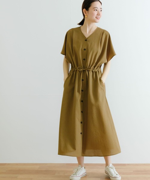【快適な着心地が嬉しい機能性ワンピース】 強撚タッチのシャリ感と麻のようなハリがあるドライタッチな麻調合繊を使用したワンピース。 UVカット/吸水速乾と夏の暑い時期まで快適に過ごせる素材でお作りしました。 前肩ヨーク下にタックを入れ、身体の中心に目線がいくことで立体的なシルエットに見えるデザインに。 1枚でスタイリングが完成する優秀ワンピースはワードローブに加えておきたいアイテムです◎ POINT ・二の腕が隠れる長めの半袖丈 ・ウエストマークでメリハリのあるシルエット ・デコルテの見えるVネックで女性らしさを演出 COORDINATE カジュアルにスニーカーやきれいめにヒール、夏にはサンダル合わせとその日の気分で雰囲気を変えていただけます。 【UR TECH DRYLUXE】 ハリのあるドライタッチさにポリエステル糸を用いて、上品な質感に仕上げました。 さらにイージーケア・速乾性・UVカットの機能も併せ持った高機能な素材です。 この清涼感のある素材を、株式会社アーバンリサーチが独自開発によって実現しました。 【2023 Spring/Summer】 ※商品画像は、光の当たり具合やパソコンなどの閲覧環境により、実際の色味と異なって見える場合がございます。予めご了承ください。 ※商品の色味の目安は、商品単体の画像をご参照ください。 ▼お気に入り登録のおすすめ▼ お気に入り登録商品は、マイページにて現在の価格情報や在庫状況の確認が可能です。 お買い物リストの管理に是非ご利用下さい。 ----------------------------- 透け感:なし 伸縮性:なし 裏地:なし 光沢:なし ポケット:あり -----------------------------