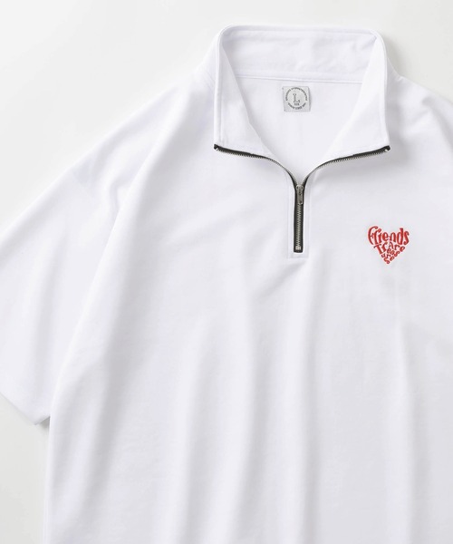 ハートロゴ&ヒゲ サガラ刺繍 ワンポイントロゴ刺繍 別注ハーフジップ 半袖Tシャツ/レトロ/アメカジ/スポーツMIX/ユニセックス ■おすすめPoint 生地はさらりと柔らかな質感で程よい伸縮性を提供してくれるポンチ素材を採用。さらっとすっきり着られる素材の為、素肌に着ても心地良いです。ポリエステルと綿の混紡素材は主張し過ぎない光沢感と、ドライな表面感が抜け感を演出します。また接触冷感機能がある為に汗ばむサマーシーズンでも快適にご着用頂けます。しっかりと編みこまれたリブ部分は適度な伸縮性によりストレスフリーとなるのに加えてボディ自体の型崩れを防止してくれる効果もあります。サイズ感は程よいワイドシルエットであるため、通常よりもオーバーサイズに着用する事で、トレンドのゆるいシルエットを演出し、多くのアイテムとの相性も抜群◎ちょっとしたお出掛け時のワンマイルウェアとしてやルームウェアとしてもおすすめです。 フロント左胸にハートモチーフのメッセージデザインとカジュアルな装いのジェントルマンをそれぞれワンポイントロゴ刺繍で施したハーフジップ半袖カットソー。アメカジ&レトロ感が溢れるデザインにトレンドのハーフジップが加わる事でスポーティーさも併せ持つ仕上がりです。またワンポイント刺繍以外の過度な装飾を抑えている事でそのデザインがより引きたち、さり気なさの中にも確かな存在感があります。着心地も良い1着の為、街中のお洒落着としてはもちろんの事アウトドアやレジャーシーンでも活躍します。半袖アイテムなので、ロンTやパーカーなどレイヤードにも適しており、インナー次第では長い期間ご着用頂けます。大き目サイズでスタイリングすることがトレンドのため、男性、女性共にビッグシルエットでの着こなしに最適です◎アメカジ、古着風コーデだけではなく人気のストリートやスポーツMIXにもおすすめのアイテムです。 ■着合わせPoint ブランドロゴ、カレッジロゴ、リブライン、リンガー、ワンポイント、線画イラスト、グラフィックアイテムと共に今季も大注目のワンポイントロゴ刺繍アイテム。人気のハーフジップ仕様も加わる事でトレンド感も抜群です♪くすみカラーなどのトレンドカラーと共にグリーンやイエロー、グレーなどの注目が集まるカラーは今季も注目となります。マウンテンジャケット、カーディガン、スタジャン、ナイロンジャケットなど多くのアウターのインナーにも最適。ワークパンツ、カーゴパンツ、ペインターパンツ、オーバーオールなど合わせると今が旬なワークストリートスタイルに。シェフパンツ合わせで、今風なゆるスタイル。チノパン、デニムパンツでスタンダードなアメカジスタイル。ブラックスキニー、テーパードパンツ、タックワイドパンツなどに合わせると大人な雰囲気にと、どんなボトムスタイルでも相性の良いトップス♪カバーオールやデニムジャケットのインナーに合わせてもかわいいです。ユニセックスなデザインは、マーメイドスカートやシフォンスカート、サロペットなどとの相性も抜群で女の子にもおすすめ◎これからの季節、ショートパンツ、ハーフパンツ、ジョガーパンツ、イージーパンツにスニーカー、サンダルなどを合わせたコーデや、アロハシャツ、総柄、オープンカラーなどの半袖シャツとの相性も◎小物に巾着バッグ・トートバッグ・サコッシュ・ショルダー・バケットハット、ワークキャップなどと合わせればストリート感、アクセサリーのネックレス リング ピアスなどを合わせてコーデすると大人カジュアル感など、小物により多くの演出も◎友達とのペアコーデやカップルコーデに使ったり、大切な人へのプレゼントとしてもおススメのアイテムです。 ■お買い物をお楽しみ頂くために ◎購入ボタン横のハートマークをクリック! 完売カラーの再入荷通知、ラスト1点の通知、セールの通知も受け取ることができます(商品のお気に入り登録) ◎ショップのトップページにあるハートマーク【お気に入りショップに追加】をクリック! 新商品の入荷や再入荷等、いち早くブランドのお得な情報を受け取ることができます(ブランドのお気に入り登録) 【make a ray!/メイクアレイ!】 スタンダードなオリジナルアイテムとストリートから発信される旬なブランドをセレクション。時代の「今」を切り取り「旬」なトレンドをミックス。 日常のファッションに都会的な要素が溶け込むアイテムをプチプライスで提案するセレクトショップです。