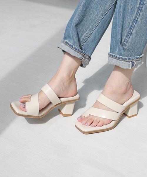 トレンド感のある クールでモードな印象に。 ■POINT ・人気のライン×サムカバーデザイン ・シンプルで使いやすいデザイン ・スッキリとした細めヒール ・夏らしい光沢の生地 ■機能性 ・ストレスフリーな履き心地 ・スタイルアップの6.5cm ヒール ・厚めのふんわりクッション ■スタイリング サムリングでトレンドをプラス!しっかりホールド感もあるので、高さを感じさせない履き心地厚めのクッションでストレスも軽減大人でクールな雰囲気にまとめてくれるアイテムーーーーーーーーーーーーーーーーーーーーーーー■スタッフ着用コメント■・スタッフA 【サイズ:M / 足幅:普通 / 甲の高さ:普通】クッションがふわふわ。トング部分も痛くないです。ヒールの高さを感じない履き心地です。・スタッフB 【サイズ:M / 足幅:普通 / 甲の高さ:高め】くせになるクッション。ホールド感もあるので安定した履き心地です。・スタッフC 【サイズ:S~M / 足幅:普通 / 甲の高さ:普通】Mサイズだと少し大きいです。Sサイズはピッタリサイズでした安定感があって履きやすいです。