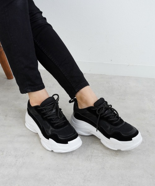 【ボリュームソールスニーカー 】 大人気の「ダッドスニーカー」 〈detail/fabric〉 しっかりと安定感のある厚底スニーカー! 歩きやすい! カジュアルにもモードにも魅せるダッドスニーカーが完成しました! 厚底ソールは脚長効果抜群でスタイルアップも期待できそう。 コーデに取り入れるだけでトレンドライクな着こなしにアップデートしてくれるアイテムです。 軽い素材を使用しているので、歩きやすくて疲れにくく、毎日のおしゃれにもぴったりです! 〈styling〉 少し厚底のソール部分がポイントで、スポーティーな格好はもちろん、スカートやワンピースなど可愛めスタイルに合わせたコーディネートにもおすすめです♪ シンプルワンピの足元に合わせたコーデがおすすめです。 ________________________________________ ************ STAFF 着用サイズメモ ************ 【着用サイズS スタッフA】 *普段22.5cm、Sサイズ。靴によっては23cmの場合もあり *足幅 普通 *甲高 普通 ☆☆ジャストサイズです。厚手の靴下や、23.5cm寄りの23cmの方にはきつく感じるかもしれません。☆☆ 【着用サイズM スタッフB】 *普段は23.5cm靴によっては23.0cmの場合もあり *足幅 普通 *甲高 やや甲高 ☆☆靴下で着用。履くときはかなり締め付け感がありますが足が入ればちょうどいいぴったり感です。24cmの方は少し窮屈に感じるかもしれません。脚長は少し余るかもしれませんがLでも問題なく履いていただけるかと思います。横幅や甲部分も割とタイトに感じますので幅広さんや甲高さんもLのほうがよいかもしれません。☆☆ 【着用サイズL スタッフC】 *普段サイズ24.5cm ☆☆靴下で着用。全体的に足にフィットしていて、脱げてくることはありません。横幅がタイトで、引き締まっている感じがします。履きやすいです。☆☆ ________________________________________ △▼△▼△▼△▼△▼△▼△▼△▼△▼△▼△▼△ FABBY FABBY./ (ファビーファビー) FABBY FABBY.は自分らしく生きるアクティブな女性に向けて、コーディネートのポイントになるようなトレンドシューズを展開しています。 自分に合う、自分らしい1足をお探しいただけます。 東京発のレディースシューズのブランドです。 △▼△▼△▼△▼△▼△▼△▼△▼△▼△▼△▼△