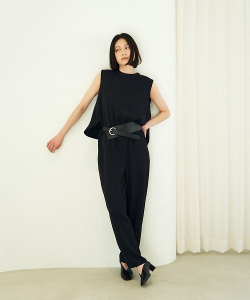 オケージョンシーンにぴったりなコンビネゾン。シンプルながら背中にデザインがあって腰上がオープンに。ひらひらと揺れる羽のようなデザインです。ちらっと見えるくらいなので上品な雰囲気はそのまま。(気になる方は黒のインナーを着てもOK)落ち感があるのに体のラインは出さず、気になるヒップやお腹周りもすっきりと仕上げてくれます。ウエストには1周ゴムがついているのでとても楽。ベルトを付けたアレンジもおすすめです。[着用時期]3月~10月(約15℃以下)[透け感]なし[生地の厚み]薄手[ストレッチ]なし※ウエストはゴム入り[生地のやわらかさ]ほんのりハリ感[生地の特徴]マットなジョーゼット系の素材[落ち感]あり[着用ジワ]なりにくい[身長]平均身長以上の方におすすめ※感じ方には個人差がございますので気になる部分がありましたらお気軽にお問い合わせください■おすすめ着用シーン入学式・入園式・卒業式・卒園式・参観日などの学校行事、結婚式・七五三・お宮参りなどのセレモニーシーンにも。二次会・同窓会・謝恩会・お呼ばれ・食事会など幅広いシーンでも着用いただけます。特別な日のちょっとしたおしゃれ着におすすめです。