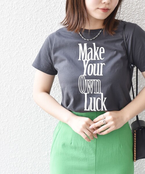 ―23SS― ■デザイン ・オーガニックコットンを使用した2パターンロゴTEE。 ・1枚着でもインナーでもタイトすぎず大きすぎないサイズ感です。 ・ロゴもボディーカラーから離れすぎないカラーをチョイス、コーディネートの程よいアクセントに。 ■素材 ・有機栽培で育てられたオーガニックコットンを使った天竺素材。 ・天竺は片面に表目が並び、表面がなめらか且つ基本編目で構成され丈夫で安定性があります。 ■コーディネート ・女性らしいIラインのタイトスカート、Aラインのボリュームのあるスカートとのコーディネートがおすすめです。 ・ジャケットやカーディガンのインナー使いにも活躍してくれます。 ・タックインするとよりロゴデザインが引き立って◎ ------------------------------------- 生地の厚み:薄手 伸縮性:有 透け感:ホワイト系やや有 光沢感:無 水洗い:可 ------------------------------------- 【スタッフ着用コメント】 《スタッフ1》 身長:164cm/体型:普通/普段サイズ:38/着用サイズ:ONE SIZE サイズ感:身幅・袖幅ともに、ややゆとりはありますがコンパクトなサイズ感。 着丈はヒップにかかるくらいで、イン・アウトどちらもしやすい長さです。 コメント:ソフトな肌触りで、着心地良く着用できました。 ------------------------------------- 《スタッフ2》 身長:160cm/体型:細身/普段サイズ:36/着用サイズ:ONE SIZE サイズ感:ほどよく身体にフィットし、ラフすぎない女性らしい印象を演出してくれます。 コメント:一枚で着るだけで様になる優秀アイテム!春夏重宝すること間違いなしです。 ------------------------------------- ※末永く愛用頂く為に、アテンションタグを必ずご確認の上、着用又はお取り扱い下さい。 ※屋外での撮影画像は、光の当たり具合で色味が異なって見える場合があります。商品の色味は、スタジオでの詳細画像をご参照ください。 ※商品画像は、光の当たり具合やパソコンなどの閲覧環境により、実際の色味と異なって見える場合がございます。予めご了承ください ※画像の商品はサンプルです。 実際の商品と仕様、加工、サイズが若干異なる場合がございます。 ※工場の生産の都合上、納期が変更になる場合がございます。発送日の前後については予めご了承ください。