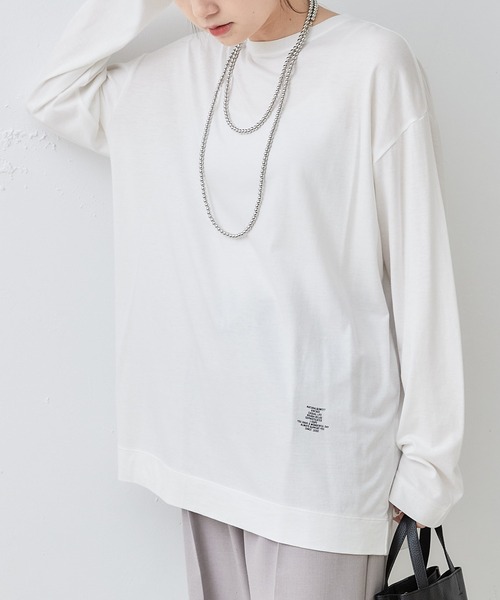 ピュアルセシン 2023 SS collection 【Town to Earth】 ◇着回し力抜群のデザインと快適な着心地が魅力◇ ●商品のお気に入り登録 クーポンやタイムセール、再入荷通知やラスト1点などお得な情報を受け取ることができます。 ご登録をお忘れなく◎ ●デザイン 裾のさりげないロゴプリントがポイントのプルオーバー。 レーヨン混の柔らかでとろみのある生地が快適な着心地を実現。 やや薄手なので、重ね着やタックインしたスタイルももたつくことなく決まります。 ゆったりめのシルエットとシンプルなデザインで、 デイリーはもちろんおうち時間のリラックスウェアにもおすすめの一枚です。 ●カラー展開 オフホワイト/ライトベージュの2色展開。 ●素材 柔らかでとろみのある肌触りの良い生地。 きれいな表面感も魅力で、独特の風合いを楽しめます。 ●スタイリング シンプルなデザインなので、柄物や色物のボトムスにも馴染みます。 ベストやワンピースのインナー使いにもぴったりで、合わせるアイテムを選びません。 ロングネックレスやコインネックレスなどのアクセサリーも映えるので、 様々な小物を合わせてお楽しみください。 =============================== 透け感:オフホワイトのみあり 裏地:なし 伸縮性:あり 光沢感:なし 生地の厚さ:やや薄手 【スタッフコメント】 年齢:20代後半/身長:158cm/普段着用サイズ:Mサイズ サイズ感:ゆとりがあるので部屋着としても活躍しそうです。 素材感:柔らかくてとろみのある、とても着心地の良い生地です。 =============================== ※撮影場所やお使いのモニター環境により若干お色味が異なる場合がございます。特にロケの撮影では明るく見える傾向にございます。 ※予約商品はサンプルで撮影をしております。若干の仕様が変更になる場合がございますので予めご了承の上ご注文くださいますようお願いいたします 。