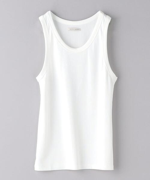 ■デザイン スッキリとしたデザインカットのタンクトップです。 シャツやTシャツの下から透けた際にも見栄えが良くなるよう、フォルムにこだわりました。 ネックは開き過ぎず、前開きのシャツやカーディガンのインナーとして組み合わせやすいデザインも特徴です。 ■素材 ポリエステルのテレコ素材。テレコの特徴であるヨコ方向への伸びがよく、身体へフィットします。滑らかで肌触りが良い編み地は着心地も快適です。 ■コーディネート 一枚での使用はもちろん、シャツやTシャツ、カーディガンなどトップスを選ばずインナーとしても重宝します。 ============================ 透け感:WHITEのみややあり 光沢感:なし ケア方法:家庭洗濯 ============================ 【注意事項】 ※商品を使用前に、タグ等に記載されている「取り扱い上の注意書き」、「洗濯表示」を必ずご確認ください。 ※商品画像は、光の当たり具合やパソコンなどの閲覧環境により、実際の色味と異なって見える場合がございます。あらかじめご了承ください。 ※商品の色味の目安は、商品単体の画像をご参照ください。 #インナー #春服 #モテ服 #きれい目 #衣替え #夏服 #ランニング #肌着 #ノースリーブ 店舗へお問い合わせの際は、全国のUNITED ARROWS各店舗まで下記の品名/品番をお申し付けください。 品名:ua TELECO TANK TOP 品番:11171992952
