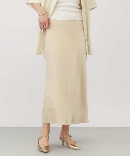ーーー 美シルエットのIラインナロースカート ーーー 【デザインと特徴】 キレイなIラインシルエットとドレープが出るように裁断したマキシ丈スカートです。 サイズ展開にし、ウエストがスッキリ見えるように仕立てました。 どこから見てもスッキリ履けるので、タックインしやすくなっています。 裏地付きで、透け感も気にならないのも嬉しいポイントです。 【素材特徴】 中肉でふっくらとした厚みがあり、品のある生地感にこだわりました。 バイアス取りと呼ばれる手法で、すっきりとしたきれいなシルエットに仕上げています。 気流染めでほどよくぽこぽことした表面感のある生地感にしています。 〈気流染めとは?〉 水の流れだけでなく、空気の流れを使って生地を染める加工方法です。 自然な表面変化が出るのが特徴で、シワになりにくく、ホームケアも簡単です。 【スタイリング】 涼しげなニットやシャツなど幅広いアイテムと相性良く着ていただけます。 【洗濯可否】 手洗いでのお手入れが可能です。 --------------------------------------------------------- 《インフォメーション》 ◆商品のお気に入り登録 完売していても再入荷時に再入荷通知を受け取ることができますので、是非ご登録ください♪ ◆ブランドのお気に入り登録 新商品や再入荷などの情報を受け取ることができますので、是非ご登録ください♪ 公式Instagram >>> 【@apartbylowrys 】 おすすめアイテムや新作情報、" ショップニュース "を更新中! ぜひフォローしてみてくださいね^^
