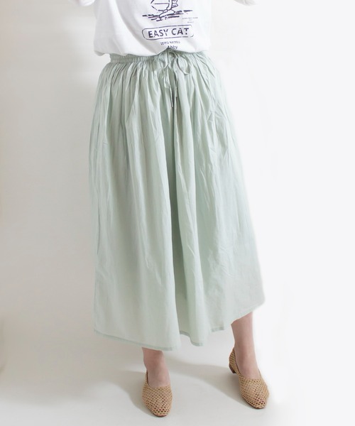 ■コットン100%の軽やかな風合いが涼しげなギャザースカート■ 薄手の生地が春から夏に向けてコーディネートにぴったりな風合いです。 ウエストはたっぷりとギャザーが入り、ふわっと軽やかなシルエットは歩くたびに揺れるデザインです。 また、ウエストはゴム仕様で紐が通っているため着脱しやすく調整もOK。 コットン素材の裏地付きで夏も快適に着用いただけます。 コーディネートのアクセントに取り入れたいカラー3色をご準備しました。 ------------------------------ 伸縮性:なし 透け感:あり 裏地:あり ------------------------------ ■POINT&STYLING■ ・シンプルなTシャツやブラウスなど、合わせるトップスはベーシックがオススメ! ・トップスをINしてウエストのギャザーを見せるのも素敵です。 ・汗ばむ季節もすぐにお洗濯できる素材が嬉しいですね♪ ※掲載画像の商品の色味は、ご使用機器(モニター)の環境や屋外や屋内の光の照射や角度により実物と色味が異なる場合がございます。 ※商品付いている品質表示をご確認ください。 ※商品には素材や縫製などの加工時に発生する縮率によっても個体差が生じます。表記を目安として、前後2〜3cm程度の幅をみてご検討をお願いします。