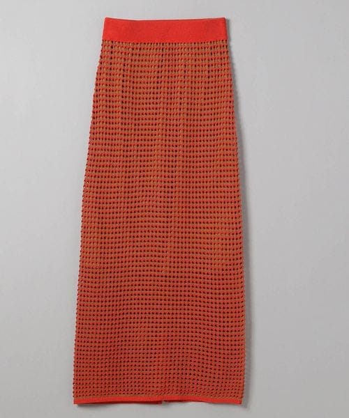 ーーー カラフルなカラーバリエーションがうれしい♪ この後の季節にオススメのニットスカート ーーー シャリ感のある綿混糸と光沢のあるレーヨンナイロン糸を組み合わせて、立体感のある柄編みに仕上げました。 カラーごとに異なる配色で、お好みの1着をお選びいただけます♪ メッシュのように穴のあいた柄編みなので、この後の季節も涼しく快適に着用できます。 取り外し可能のペチコートが付いているので、着回しのバリエーションが広がります★ 今季はパンツと合わせたレイヤードスタイルがオススメ◎