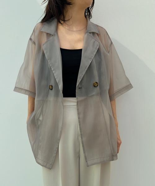 y/mトレンドの透け感のあるオーガンジージャケット■デザイン透け感のある素材のジャケットは着るだけでトレンド感がでる一枚。ビッグシルエットで大き目のサイズ感なのも◎■コーディネートシンプルにキャミソールなどで合わせるのがおススメのコーディネート。ブラックなどの色を合わせても素材に透け感がある為、重たくならず抜け感のある印象に。【お買い物をよりお楽しみいただく為に】▼商品のお気に入り登録お気に入りアイテムの値下げ・再入荷・ラスト1点などの通知を受け取ることができます。▼ブランドのお気に入り登録新商品や再入荷、セール、クーポン配布などいち早くお得な情報を受け取ることができます。※撮影商品はサンプルの為、実際の仕様と異なる場合がございます。※画像の商品は光の照射や角度、お使いのモニター環境により、実物と色味が異なる場合がございます。品番:520GSY30-2670品名:オーガンジーハーフスリーブシャツ