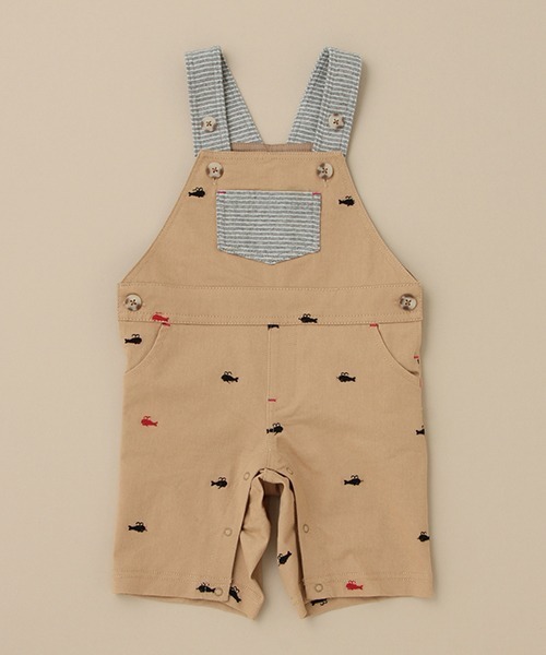 ストレッチ性のあるツイル素材に、クジラの刺しゅうをほどこしたサロペットパンツです。 お子さまの成長に合わせて肩ひもにつけた長さ調節用のボタン位置を変えることで、より長くご着用いただけます。股下はスナップボタンで全開になるので、おむつ替えも簡単。Tシャツでカジュアルに、シャツでお出かけ着に、と合わせるお洋服によって様々なコーディネートが楽しめるアイテムです。刺しゅうの裏に「あて布」はございません。【おすすめの着用時期は春夏シーズン】【透け感】透けない【生地の厚さ】普通【伸縮性】あり【裏地】なし【ポケット】あり【アジャスター】なし
