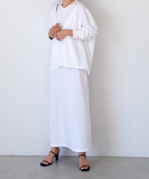 カジュアルな雰囲気の中に漂うさりげない女性らしさを引き立てるツーピースアイテムトップスとワンピースのツーピースアイテム。ボディラインを拾わないゆったりめな着心地のトップスと、コンパクトなアメスリデザインのワンピースでメリハリのあるシルエットに。カットソーのカジュアルなムードがありながらも、スムースのなめらかな生地感が艶やかさも。ワンピースのすっきりとしたIラインシルエットとは対照的に、プルオーバーは深めに開けたVネックとオーバーサイズのバランスがこなれた印象に。さり気ない肌見せができて大人ヘルシーなスタイルに仕上がり、単品使いもできる着回し力も抜群なアイテム。▼お取り扱い上の注意※お手入れの際は商品の縫込みネーム・アテンションを必ずご確認ください。家庭洗濯〇(40℃限度。手洗いのみ)漂白×タンブル乾燥×日陰での吊り干しアイロン〇(低温110℃まで。スチームアイロン×)ドライクリーニング〇(弱い処理。石油系溶剤)ウェットクリーニング〇(非常に弱い処理)・形をととのえてから干して下さい。・水洗いは充分にし、絞ったままや、水につけたままで長時間の放置は避けて下さい。・素材の性質上、多少収縮する可能性があります。洗濯後、形を整えて干して下さい。なお自動乾燥機(タンブラー)の御使用はおさけ下さい。・この製品は、洗濯の際、多少の色落ちします。他のものと別に洗って下さい。・タンブラー乾燥禁止。