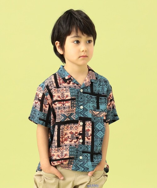 さらりとした着心地が夏にピッタリ☆ さらりとした着心地が魅力のレーヨン素材の柄シャツが登場。クレイジーパターンのバンダナ柄と、柄が引き立つカラーのネイティブ柄の2色展開で、スタイリングの主役に持ってこいなデザインです! オシャレに欠かせないオープンカラーシャツは、ボタンを閉めて一枚スタイルでも、Tシャツやタンクトップとレイヤードしてコーディネートを楽しめるひと品です。 Boy Model:H109(cm) Size:110 ※画像の商品はサンプルのため、実際の商品と仕様が異なる場合がございます。 ※画像の商品はSize:110cmで撮影しております。 ※90~120cmサイズは、ブランドネームカラー:オフホワイトです。 ※130~150cmサイズは、ブランドネームカラー:ネイビーです。 ※光の当たり具合やパソコンなどの閲覧環境によって実際の色味と異なって見える場合がございます。予めご了承ください。 ※商品の色味は商品単体で撮影した画像をご参照ください。 BEAMS mini / ビームス ミニ 〈BEAMS mini〉は、太陽が似合うような元気なカラーリングを大切に、ベーシックアイテムに適度なファッション性を加えた子ども服。子どもが服や生活を楽しんでいる様子を見て、大人もつられて遊びはじめてしまうような、エンターテイメントな楽しさが溢れています。価格とデザインのバランスでお客様の琴線に触れる「着て楽しい、見て楽しい子供服」を提供します。