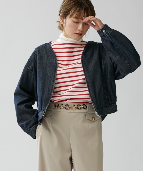 【Le temps riche(ルタンリッシュ)】着る人の日常を豊かに彩るちょっと遊びごごろのあるスタイルをご提案 フレンチカジュアル・トラッドをベースに、”かわいい”を忘れない大人女子のためのブランドです。 「何を着るか」だけでなく「どう着るか」トレンドに流されすぎず、 自分の「好き」に正直にファッションを楽しむ人に想いを届けます。 ■商品特徴 シーズン問わず長く着回しの利くショート丈のデニムジップジャケット 短めの着丈とドロップショルダーがトレンドのデニムジャケット ノーカラーのジップ使いでVゾーンをスタイリッシュに見せてくれます。 春先のアウターとしてサッと羽織れるのはもちろん、冬はコートのインナー使いとしても活躍する優秀アウターです。 ■おすすめコーディネイト・スタイリング ボーダーTやハイネックなどトップスはインしてスッキリさせたフレンチスタイルがおすすめです。 ■その他特徴 生地の厚み 中肉 生地の透け感 なし 伸縮性 ナチュラルストレッチ ポケット 前ポケット2 裏地 なし 洗濯方法 洗濯機OK ネット使用 <仕様> 綿58%・再生繊維(テンセル)42%(織物) <洗濯方法> 洗濯機OK ネット使用 ■キーワード Dairy&Basic,アイビー,インターネット限定,カジュアル,ガーリー,ガールズトラッド,ジージャン,ストリート, デニム,デニムジャケット,デニムブルゾン,トラッド,トラディッショナル,ネット,ハイカジュアル,パリジェンヌ, ファッジ系,フレンチカジュアル,フレンチガール,ボーイッシュ,マニッシュ,マリンスタイル,ルタンリッシュ, レディース,レディースファッション,ロンドンガール,夏,大人カジュアル,大人ナチュラル,春,