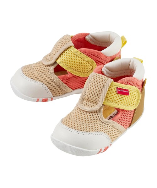 ミキハウスホットビスケッツのメッシュ ファーストベビーシューズ。 人気のかかと顔シリーズのファーストベビーシューズ。 かかとにくまの顔があるデザインで後ろ姿までかわいい♪ 顔ドンシリーズのウェアとの相性もばっちり! 男の子にも女の子にも履いていただけるカラーです。 春先からは靴下を履いてスニーカーとして、夏は裸足でサンダルとして活躍してくれますよ。 つま先が閉じているので、公園で石が入り込んで痛くなったり、つま先をぶつけて怪我をしてしまうのを防いでくれます。 もちろん歩行をサポートする機能も充実しています。元気なお子さまの足元のアクセントにもおすすめです。 通気性・速乾性・クッション性に優れたダブルラッセル素材で、 汗っかきなお子さまの春夏用のシューズにぴったり◎ ●靴箱付き(ご奉仕品につきましては付属していない場合がございます。) ~ファーストシューズ~ よちよちあんよを始めた赤ちゃんに。 ■ゆとりと丸みのあるつま先 着地するたびに広がる赤ちゃんの足の指。 この指の動きを妨げることなく指を使って地面をつかむように歩けるようにしています。 ■しっかりしたカウンター(シューズのかかと部分) 大きく固めのカウンターで、傾きやすい赤ちゃんの足をまっすぐ支え、 シューズとの一体感を高めて歩行を安定させます。 ■フレックスソール 赤ちゃんの足が曲がる位置で、曲がる柔軟なソールは スムーズな歩行を助け、土踏まずの形成を促します。 ■つま先のそり返し つま先が少しあがっているので、歩き始めの赤ちゃんがつまずきにくい。 ■甲は面ファスナー 大きくベルトが開き、履かせやすくなっています。 面ファスナーで調節できるので、甲高の赤ちゃんの足にもフィットします。 ※面ファスナーとは、マジックテープのことです。 (「マジックテープ」は(株)クラレの登録商標です。) ---------------------------------------- ★\\お気に入り登録でお得な情報がたくさん//★ ▷▷商品のお気に入り登録 再入荷通知やラスト1点、お気に入りアイテムのセールなどの通知を受け取ることができます。 ▷▷ブランドのお気に入り登録 新商品や再入荷、おすすめトピックスなど ブランドのお得な情報をいち早く受け取ることができます。