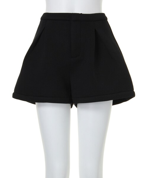 カットソーと薄手のスポンジを張り合わせたボンディング素材です。ハリがありトレンド感のある素材です。ウエストから裾にかけてワイドなシルエットです。足を細く見せてくれます。ボリュームのあるショートパンツなので、ショート丈のTOPSやニットなどでサラッと着て頂くのがオススメです。
