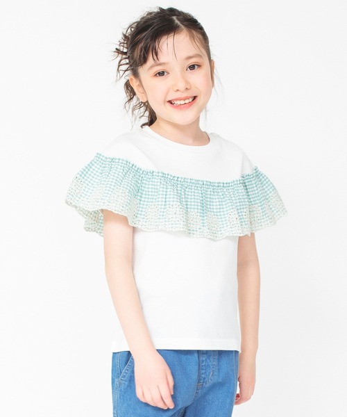 前後スカラップ刺しゅうを施したフリルが特徴的なTシャツです。 フリルの下にお袖がついており、着用にも安心仕様です。 ----- <袖、身頃部分> 透け感:ややあり 伸縮性:あり <フリル部分> 透け感:ややあり 伸縮性:なし ※モデル着用写真についてはイメージの為、実際の 商品とカラーや仕様が異なる場合がございますので、 商品画像をご覧ください。 ※商品の色味につきまして、お客様のお使いのPCの モニター環境により実際のカラーと画像の色味が 違って見える場合が御座います。 予めご了承の上、ご注文下さい。 ※店頭・外での撮影画像は光の加減で、 実際の商品より明るく見える場合が御座います。 子ども/子供/こども/子供服/キッズ/ジュニア/男の子/女の子