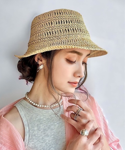 ざっくり編みで透かしデザインが今っぽいバケットハット。 春夏気分を一気に盛り上げてくれるアイテムです。 暑い日でも通気性よく快適にかぶっていただけます。 適度に編み込んでいるので日よけとしても。 シンプルなデザインなのできれいめやカジュアル、ナチュラルコーデなど 様々なコーディネートに合わせていただけます。 年代も問わずご着用いただけるのでギフトにもおすすめ。 【point】 ・サイズ調節可能 内側のスベリの裏にアジャスターがあり、簡単にサイズ調節が出来ます。 ・軽く折りたたんで持ち運びOK