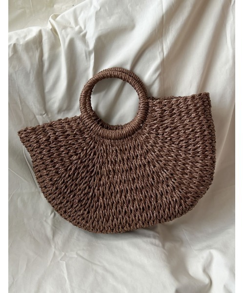 ハーフムーンのシルエットが旬 シーズンムード高まる雑材ハンドバッグ。 丸みのあるハーフムーンのシルエットがトレンドライクな印象に。 水筒やハンドタオルなど、レジャーやお出かけのシーンに必要なものはしっかり入る大容量サイズ。 実用性もトレンド感も兼ね備えたかごバッグです。 ▼お取り扱いについて ※素材の特性上、色、形状のバラツキや、素材自体のキズ等があります。 切れ端やささくれ等が出ている場合がありますので、お取り扱いにご注意ください。衣類などの引っ掛かりにもご注意ください。 ■モデル着用写真は撮影環境により、 多少実際のカラーと異なる場合がございます。 お気に入りショップにご登録いただきますと、 ショップニュースを、いち早くお届けいたします。