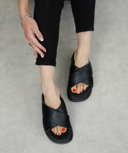 【クロスベルト厚底サンダル】モードカジュアルなスタイリングにマストなクロスボリュームサンダル!〈detail/fabric〉ふっくらとした立体的なアッパーデザインがトレンド感のあるオーバーボリュームの足元に。見た目通り柔らかく足を包み込んでくれます♪ミュールスリッパタイプでさっと履けるので忙しい朝でも着脱がスムーズなのもうれしいポイント。同じ素材で統一し、モードな雰囲気に仕上げました。〈styling〉ワンカラーで仕上げているのでいろんなコーデに合わせやすいです。素足で合わせるのはもちろん、春先にはソックス合わせもおすすめ♪足元に程よいボリュームを足すことで、ワイドなボトムスでも全体のバランスがまとまります。△▼△▼△▼△▼△▼△▼△▼△▼△▼△▼△▼△▼△▼△▼△▼△FABBY FABBY./ (ファビーファビー)FABBY FABBY.は自分らしく生きるアクティブな女性に向けて、コーディネートのポイントになるようなトレンドシューズを展開しています。自分に合う、自分らしい1足をお探しいただけます。東京発のレディースシューズのブランドです。△▼△▼△▼△▼△▼△▼△▼△▼△▼△▼△▼△▼△▼△▼△▼△▽お気に入り登録について完売カラーの再入荷通知やお得な情報を受け取ることができます。▽ブランドのお気に入り登録についてブランドの新商品や再入荷などお得な情報を受け取ることができます。▽ショップのお気に入り登録についてブランドに関わらずショップの新着情報やお得な情報を受け取ることができます。
