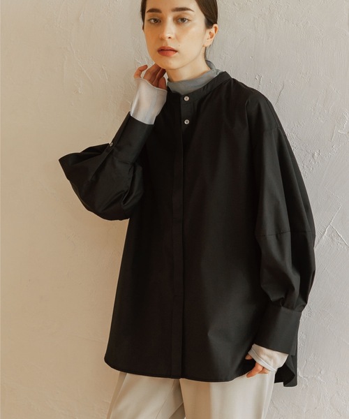 ------------------------------------------------- ▼ お気に入り登録 1800人突破!------------------------------------------------- 1枚で決まる! シワになりにくく、マルチな機能性も魅力のバンドカラーボリュームスリーブシャツ 【デザイン】 ・バンドカラーと程よくボリュームを出したコクーン袖でクラシカル&今年らしい印象のブラウスシャツ ・ほどよくハリのある素材で空気を含んだシルエットが作りやすく、着るだけで今年らしいシルエットが叶います。 ・ゆとりのあるシルエットに、ドロップショルダーでイージーな着心地もポイント ・やや長めの丈感で、アウトで着用すれば腰回りをカバー可能です。 ・釦を開けて羽織としても活用いただけます。 ・キレイめなパンツやフレアスカートと合わせて通勤スタイルにも、デニムと合わせて上品なカジュアルスタイルにも。 ・ベーシックな無地とトレンドのストライプを揃えて、幅広いスタイリングに対応できる色展開に。 【素材】 ・コットン高混率ながら、機能性の高いポリエステルを混紡することで、コットンシャツの本格的な表情と、シワになりにくく取り扱いのイージーさを両立させた「エステネージュ」素材を使用。 ・ほどよいハリ感と肉感で、シーズンを問わず着用が可能です。 ・うれしいUVケア&イージーケア機能付 ※こちらの商品はやや透け感があるため、インナーの着用をおすすめします。 【エステネージュ】 UVカット、マシンウォッシャブル、を備えた素材、エステネージュ。 絶妙なハリ感としなやかさが特徴で、シワになりにくいイージーケア素材です。 ※この製品は、太陽光線中の紫外線(UV)を通しにくくします。この効果は永久的ではありません。 【スタッフコメント】 sachiko(174 /骨格ナチュラル/ブルべ) Mサイズで程よくゆとりのあるサイズ感です。袖のボリューム感が可愛く、1枚で着映えします。もちろん、今年風にレイヤードしての着用もオススメ!着丈が前後差のある長めの丈感。アウトもインもしやすいの こちらの商品は主に春に着用いただける商品です。 モデル情報:身長168cm B76 W58 H86 着用サイズ:38(M) 店舗へのお問い合わせ商品番号:637-86013 ●製品寸法: 36(S):着丈73cm B122cm 袖丈51cm 肩幅53cm 38(M):着丈74cm B125cm 袖丈52cm 肩幅54cm 40(L):着丈76cm B128cm 袖丈53cm 肩幅55cm 42(LL):着丈76cm B131cm 袖丈54cm 肩幅56cm 備考: