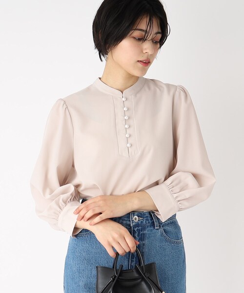 ------------------------------------------------- ▼ お気に入り登録 1,000人突破!------------------------------------------------- バンドカラーでもスキッパーでも決まる! オフィススタイルにもピッタリなパール調ボタンブラウス 【素材】 ・ふくらみとドレープ感が特徴のポリエステルジョーゼット生地を使用。 ・程よい透け感と柔らかな光沢感が上品な印象。 ・マシンウォッシャブルなので、ご自宅でお洗濯可能。 ・イージーケア素材で、洗濯後のアイロンもらくちんです。 ※こちらの商品はやや透け感があるため、インナーの着用をおすすめします。 【デザイン】 ・フロントパール調ボタンが華やかな一枚着ブラウス。 ・フロントを閉めてバンドカラーにも、開けてスキッパーカラーでも決まる2WAYデザイン。 ・柔らかなパフスリーブでボディラインを優しくカバー。 ・くすみパステルカラー展開でシーズンレスで活躍します。 【スタッフコメント】 みさか(158cm/骨格ウェーブ/イエベ春) 薄手でサラッとした生地感なので、梅雨の時期でも快適に着用できます。首元のパール調デザインがポイントで、上品な印象になります。158cm Mサイズの着用でジャストサイズです。生地に伸縮性はないのでバストラインなどが気になる方はLサイズがおすすめ。 こちらの商品は主に春に着用いただける商品です。 モデル情報:身長163cm B80 W60 H89 着用サイズ:38(M) 店舗へのお問い合わせ商品番号:C58-86019 ●製品寸法: 36(S):着丈56cm B90cm 袖丈47cm 肩幅33cm 38(M):着丈57cm B92cm 袖丈48cm 肩幅34cm 40(L):着丈58cm B95cm 袖丈50cm 肩幅35cm 42(LL):着丈59cm B98cm 袖丈52cm 肩幅37cm 備考: