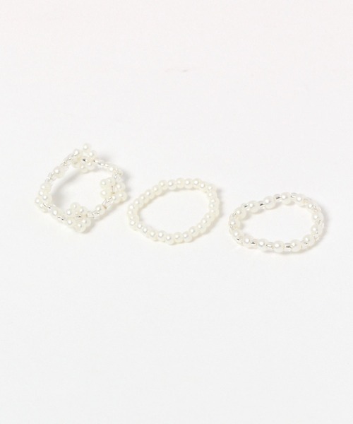 ーーーデザインとカラーが違う3本セットのビーズリング。伸縮するタイプで着脱簡単◎華奢で可愛らしいデザインで指先を華やかにしてくれます。単品や重ね着けはもちろん、お手持ちのリングと組み合わせて着けても楽しめます。ーーー