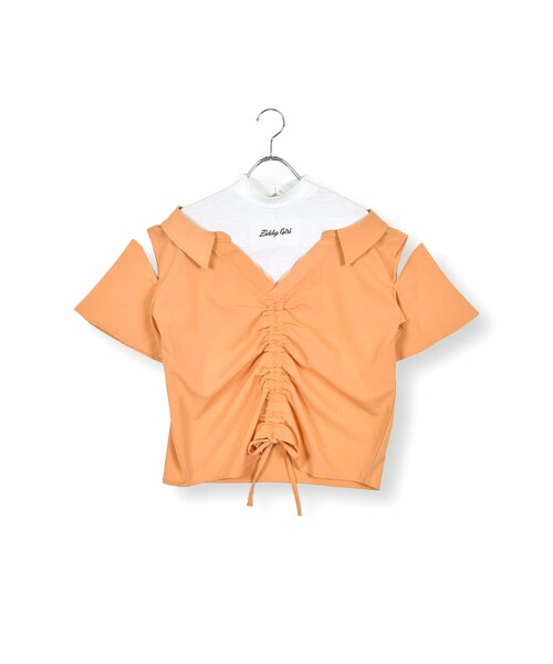 胸のロゴ刺繍がポイントになったモックネックのリブTシャツと、ドロストデザインが印象的なドッキングシャツ。 くしゃっとしたドロストが可愛く柔らかな印象を与えます。 シワになりにくく、型崩れがしにくい柔らかい生地感で着心地もバツグン。 抜き襟風なオシャレなレイヤードデザインとトレンドライクな肩開きデザインも目を惹くポイント♪ ヘルシーな肩見せと、いつもと違うシャツコーデ、オシャレ感高めの着こなしをかなえます。 お色は都会的なブラックと夏にピッタリの明るいオレンジの2色。 シンプルなミニボトムにインしても、アウトで羽織っても◎ レディライクなデザインなので、きれいめデニムと合わせてCuteに着こなせます。 一味違うワンランク上の大人っぽさを取り入れたい女の子におススメの、トレンド感溢れる着こなしに欠かせない、今季のマストのアイテムです。 ※ドロストの絞り具合は紐で簡単に調節していただけます。 ※後ろのネック部分はセッパとボタンがついています。 【ZIDDY(ジディー)】 FOR FASHIONABLE GIRLS ~オシャレが好きな女の子を応援~ レディース・ティーンズトレンドを取り入れた、女の子の“今”に寄り添うファッションブランド ティーンズ心ときめく要素を詰め込んだ商品を展開し、女の子のオシャレを応援