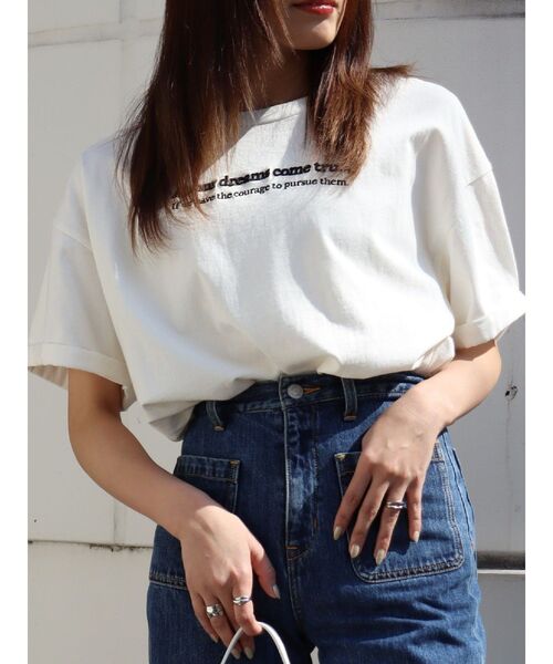 ■デザインボディに合わせて配色を変えたロゴがポイントのBIGTシャツ。ホワイト、グレーは落ち着いた色味のロゴで洗練された印象に。ブラック、ネイビーはEVRISらしいパキッとカラーの刺繍を施しました。■スタイリングゆるっとしたサイズ感なのでワンピース風の着も用もおすすめです。ロゴの色味を拾ったリンクコーデも統一感あって◎。-------------- 透け感:なし 裏地:なし 生地の厚み:普通伸縮性:なし --------------胸元に立体感のあるグラフィック刺繍がインパクトのあるBIGTシャツです。ボディーのカラーとグラフィック刺繍のカラーがEVRISらしい配色になっております。ロゴの意味:夢を追い求める勇気があれば全ての夢は叶う