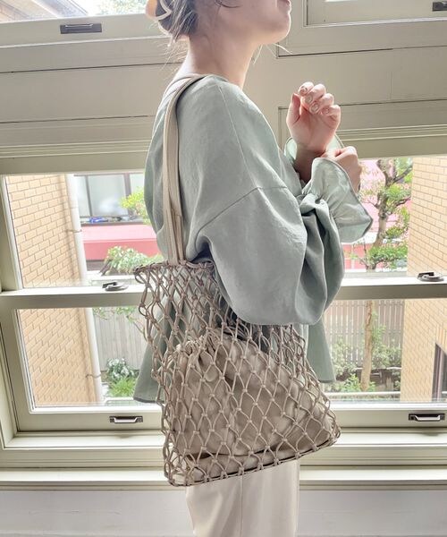 ――― ■デザイン■ 毎年人気のマクラメトートに今年は合皮の紐で編んだデザインを追加しました。 新鮮な見え方になると思います。 ――― ■スタイリング■ 今年は合皮素材のアミアミもご用意。大人っぽく持っていただけます。