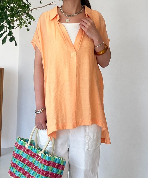 時短に最高!アイロンいらず 商品ポイント ・しわ加工でアイロンの手間いらず ・Vネックでスッキリ見え ・ゆったりラインで二の腕も華奢見え おすすめコーディネート デニムやチノパンなどカジュアルなパンツと合わせれば、甘すぎない大人な休日の着こなしに。 スカートにインしてバランスを取ると、綺麗目なスタイリングが完成。 素材 レーヨン:80% ナイロン:20% 洗濯方法:手洗い 透け感:あり 伸縮性:あり 生地の厚さ:薄手 【スタッフ着用コメント】 《ちいさん》 身長:162cm/着用サイズ:F 体型:普通/骨格:ウエーブ/パーソナルカラー :イエベ秋 ゆったりしたデザインが着心地がいいブラウスです。 しわ加工なのでボトムインもしやすかったです。 《YUI》 身長:149cm/着用サイズ:F 体型:ぽっちゃり/骨格:ウェーブ/パーソナルカラー :イエベ春 V開きのデザインとお尻、お腹もカバーしてくれるのでぽっちゃりさんにおすすめしたいブラウスです。 《ゆうき》 身長:153cm/着用サイズ:F 体型:ぽっちゃり/骨格:ストレート/パーソナルカラー :イエベ春 骨ストにうれしいV開きで程よいゆとりがうれしい! 丈が長めなのでパンツコーデに合わせても安心して着ることができました。 骨格タイプ ストレート:全体的に立体型で筋肉質。ひざ下はすらっと細め。ボディラインにメリハリがある。 ウェーブ:上半身が薄く、華奢。緩やかな曲線のボディライン。下半身に重心があり女性らしい体型。 ナチュラル:筋肉や脂肪があまり感じられない体型。腰の位置が高く骨や関節が目立ちやすい。 ============================ 【注意点】 ※画像の商品は光の照射や角度、お使いのモニター環境により、 実物と色味が異なる場合がございます。 あらかじめご了承下さいませ。 ============================ 【お買い物をもっと便利に楽しく♪】 『♡』をクリックでお気に入り登録 ・「商品のお気に入り登録」で・・・ ラスト1点や再入荷の通知が届きます。 登録して頂いた商品だけが対象となる、あなただけのタイムセールが開催されることも! ・「ブランドのお気に入り登録」で・・・ 新商品や再入荷など、いち早くブランドのお得な情報を受け取ることができますので、ご登録をおすすめします! ============================