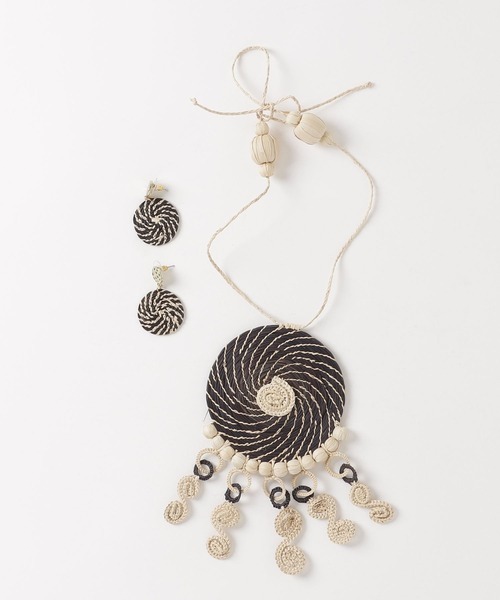 2022 Spring & Summer item夏にぴったりな大振りネックレスとピアスのセットアイテム ●天然草木を使用したハンドメイドのアクセサリー●コーディネートのアクセントになるネックレスとピアスのセットアイテム●ネックレスの長さは調整可能なのでスタイリングに合わせて付け方を変えられます●大ぶりでも軽く付けやすいので、付け心地も快適●他にはないデザインで、付けるだけでサマになります --------------------------------------------------------お気に入り登録のオススメ▼商品のお気に入り登録▼再入荷、残り1点、セールなどの通知を受け取ることができます。▼ブランドのお気に入り登録▼新商品や再入荷、ショップのおすすめトピックスなど、いち早くブランドの情報を受け取ることができます。-------------------------------------------------------- ※こちらの商品は、弊社管理上のカラーを表記しております為、タグのカラー表記と異なる記載となっております。 【サイト表記:タグ表記】・ブラック:NATURAL BLACK ※掲載画像の商品の色味は、屋外や屋内の光の照射や角度により実物と色味が異なる場合がございます。また表示のサイズ感と実物は若干異なる場合もございますので、予めご了承ください。 ※着用、お取り扱いの際は、商品についている品質表示とアテンションタグを必ずご確認下さい。【JARDIN DEL CIELO/ジャーディンデルシエロ】コロンビア発のバッグブランド。自然の自由なスピリットからインスパイヤーされ、全ての行程が様々なコミュニティーの職人によってハンドメイドで作り上げられている為、全ての形、デザインが違っており、それもまたユニークで一つ一つがスペシャルな物に仕上がっています。