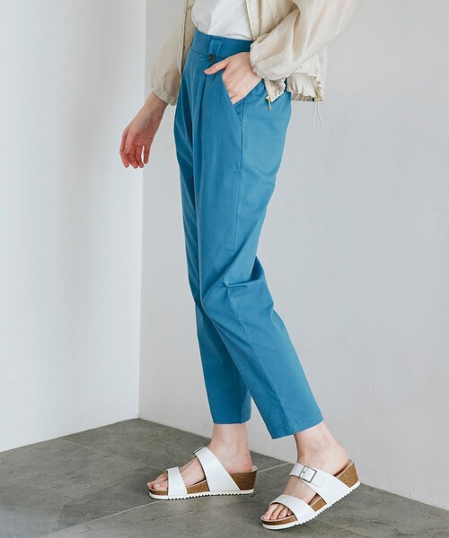 ぐんぐん伸びてらくちんオシャレなテーパードパンツ! 【デザイン】 太ももまわりにゆとりをもたせ膝下から裾口にかけてすっきりはけるテーパードデザインです。 ウエストはゴム仕様になっており、すっと穿ける楽なとこともおすすめ。 ウエストにはボタンデザインが施されており、フロントINのスタイリングにも釦アクセントが素敵です。 ※低身長さん向け股下62cm(768-66907) ※高身長さん向け股下70cm(768-66908) ※ポケット数:横×2 【素材】 ストレッチ性があり、ぐんぐん伸びて履き心地の良い素材を使用しております。 接触冷感機能がついております。 ※裏地なし こちらの商品は主に夏に着用いただける商品です。 モデル情報:身長166cm B80 W59 H86 着用サイズ:02(M) 店舗へのお問い合わせ商品番号:768-66030 ●製品寸法: 01(S):W65~82cm H97cm 股下64cm 前股上29cm わたり幅28cm 裾幅16cm 02(M):W68~85cm H100cm 股下65cm 前股上30cm わたり幅29cm 裾幅17cm 03(L):W71~88cm H103cm 股下66cm 前股上30cm わたり幅30cm 裾幅17cm 04(LL):W74~91cm H106cm 股下67cm 前股上30cm わたり幅31cm 裾幅18cm 05(3L):W78~95cm H110cm 股下67cm 前股上31cm わたり幅33cm 裾幅19cm 備考: