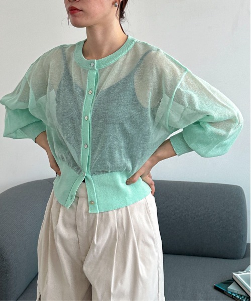 ◆Point ・昨年大人気だったシアーカーディガンが新色を加えて再登場! ・清涼感のあるシアー素材で暑い時期にも大活躍 ・今年らしい鮮やかで気分の上がるカラー展開 ・ニットですがハンドウォッシャブルも可能◎ ◆Detail トレンドライクな爽やかなシアーのニットカーディガン。 薄めで柔らかなシアー素材なのでストンとなりすぎないよう、ボリューム袖にして動きのあるシルエットを実現。 ショート丈でコーディネートとのバランスが取りやすく低身長さんから高身長さんまで幅広く活躍すること間違いなし。 feepurならではの今年らしい鮮度の高いカラー展開も魅力。 シンプルなスタイリングに差し色としてお使いいただくのもおススメです◎ ◆Fabric 透け感のあるシアーのポリエステル素材なので肌に貼りつきにくいサラッとした着心地。 ニットですがハンドウォッシャブルも可能で暑い時期にも嬉しいポイント◎ -------------------------- 透け感:あり 伸縮性:あり 光沢:なし 生地の厚さ:★★☆☆☆ お手入れ方法:手洗い可 --------------------------- ◆Coordinate ・デニムボトムなどのカジュアルアイテムとシンプルに合わせて爽やかな夏スタイルに ・サロペットやキャミワンピースなど肌見せアイテムの羽織としても◎ ※照明や天候、閲覧環境によって実際の色味と異なって見える場合がございます。予めご了承ください。 ◆Information 欲しいitemをお気に入り登録(♡マークをclick) ・お買いのがし対策…完売itemの再入荷やラスト1点の情報をお知らせ ・欲しいitemをお得にget…pricedownになったらいち早くお知らせ ・スムーズ検索…ZOZOのお気に入りアイテムページで簡単checkできるから、再検索不要♪