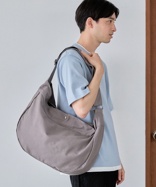 トレンドのニュースペーパーバッグ。 大きめのサイズ感ですが薄手のキャンバス素材なので、かさばりにくく軽いのもポイントの1点。 太めのベルトがアクセントになり、ショルダー部分は長さ調節もしやすいので使いやすさもおすすめのアイテムです。