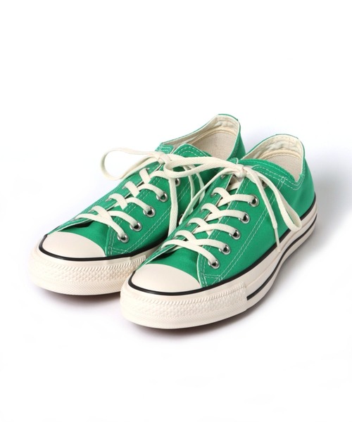 ーーーオールスターのディテールアレンジモデル。色褪せたかのようなアッパーカラーに、生成りのテープ、シューレース、ライニングを合わせ、太陽を浴びて経年変化したようにデザイン。ガムカラーのアウトソール、通常よりもピッチの広いステッチングで仕上げ、ディテールにもこだわった一足。リラックス感があり、春夏のリゾートスタイルとも相性の良いモデル。ジェイドグリーンにはイエロー、サンセットオレンジにはパープルのスペアシューレースが付属しています。ーーー【CONVERSE(コンバース)】マーキス・M・コンバースが設立したコンバース・ラバー・シュー・カンパニーが起源。コンバースの代表作である“オールスター”は1917年の誕生以来、そのスタイルは現在もほとんど変わることなく生産され続けられています。また、その他にもジャックパーセルやプロレザーなど長年愛され続け、スニーカー史に名を残す名作が揃っています。