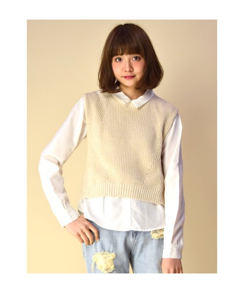 春らしいさわやかなレイヤードアイテム。綿混で着心地も良いです。合わせるボトムをえらびません。※2枚セットアイテムになります。