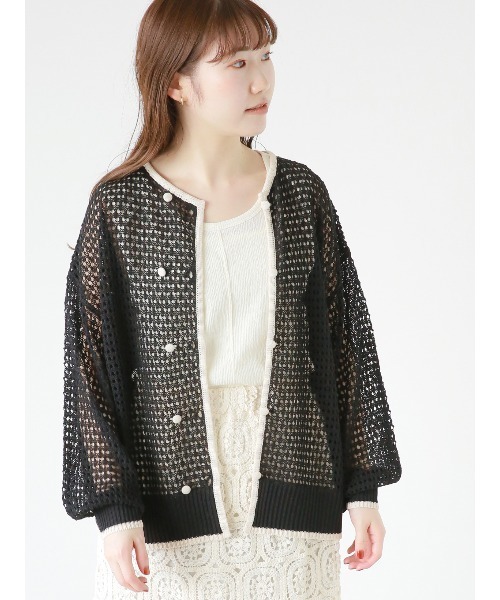 パイピングデザインとくるみボタンがデザインのアクセントのカーディガン。肩落ちのシルエットになっており、やわらかで曲線的なフォルムを生み出します。ざっくりとした透かし編みが抜け感を演出◎ボタンを閉じてプルオーバー風に着るのもオススメです! ※商品画像は、撮影環境やお客様のご利用のPC・スマートフォンのモニター環境などにより実物と色味に差異がある場合がございます。