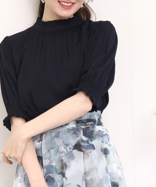 クチュールブローチならではのデザインブラウス!ふんわりパフ袖で女性らしい華奢感を演出~POINT~・シャーリングデザインをポイントにした、スタンドフリルネックブラウスです。・5分袖丈なので二の腕周りをカバーしてくれます。今すぐから夏まで使えて便利◎・ベーシックなカラー展開できれいめスタイルからカジュアルまで幅広く着こなせます。・前後2WAY仕様で、二面の表情変化が楽しめる!シンプルなボトムのときにはボタンを前にするのもオススメ◎【ディティール・機能】・縦線の織りが入った柔らかいピケ素材を使用しています。・細かいギャザーがとてもきれいに入る素材のため、繊細な表情をお楽しみ頂けます。※アイボリー(004)、ライトグレー(011)はやや透け感があるため、インナーの着用をおすすめします。【スタッフコメント】・maki(163 )ふんわりしたお袖が可愛らしいクチュールブローチ人気のブラウス。インもアウトも楽しめる丈感は、デニムスタイルにもぴったり◎春夏コーデには欠かせない、着回し力抜群アイテム!薄手の素材なのでこれから初夏シーズンまで長くお使いいただけます。モデル情報:身長163cm B81 W56 H82 着用サイズ:38(M)店舗へのお問い合わせ商品番号:508-86031●製品寸法:38(M):着丈58cm B110cm 袖丈31cm 肩幅36cm40(L):着丈61cm B113cm 袖丈32cm 肩幅37cm42(LL):着丈62cm B116cm 袖丈32cm 肩幅38cm備考: