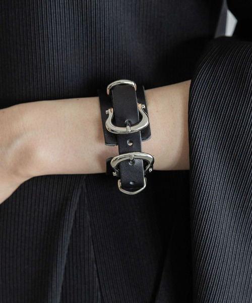 ーーー栃木レザーを使用した、ダブルバックル仕様のバングル。ーーーpoint□ダブルバックルの仕様のベルトバングル□栃木レザーを使用している為、環境にも優しいアイテム□アームカフとしてブラウスやカットの上から着用しても◎fabric栃木レザーは、樹木のエキスなど使った植物なめしという原始的な方法で、手間暇をかけて1ヶ月という長い時間をかけて作られています。そうすることで、丈夫で長持ちし、使い込むほどに革本来の味わいが出てくるエイジング(経年変化)を楽しめます。また環境にもやさしく、そのまま捨てても、やがて土に還るとまで言われています。使用するうちに傷はつきますが、味として楽しんで頂けます。stylingご自身の手首の大きさに調節しやすく、どんな服の上からも巻きやすいです。ダブルバックルで存在感もあるので、コーディネートのアクセントとしても◎※撮影環境により、光の当たり具合で 色味が違って見える場合があります。 あらかじめご了承下さい。