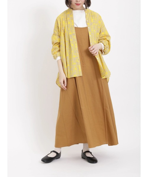 着心地が良く、程よいドレープ感が大人っぽいリネンレーヨン素材のキャミソールドレスです。インナーに合わせるもので春先から初秋まで長い間使っていただくことができる素材感です。深めのVにあけたバックデザインがポイントです。肩ひものアジャスターで肩紐の長さの調整ができますので、様々な身長の方に着ていただくことができます。防シワ加工を施していますので、リネンレーヨン素材としてはシワになりにくくなっています。※商品画像は、撮影環境やお客様のご利用のPC・スマートフォンのモニター環境などにより実物と色味に差異がある場合がございます。【その他採寸】F 着丈:115-122cm